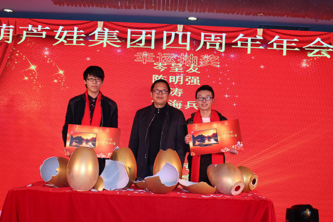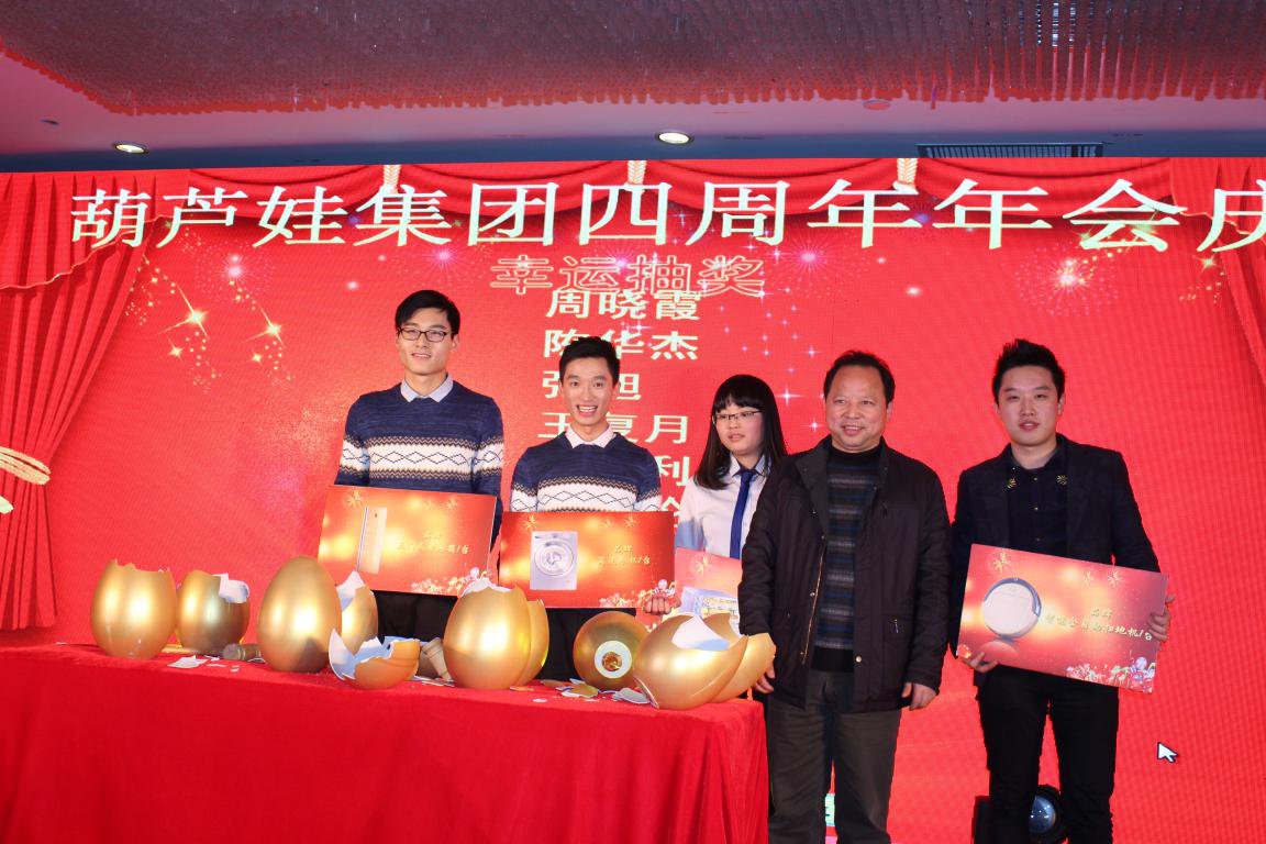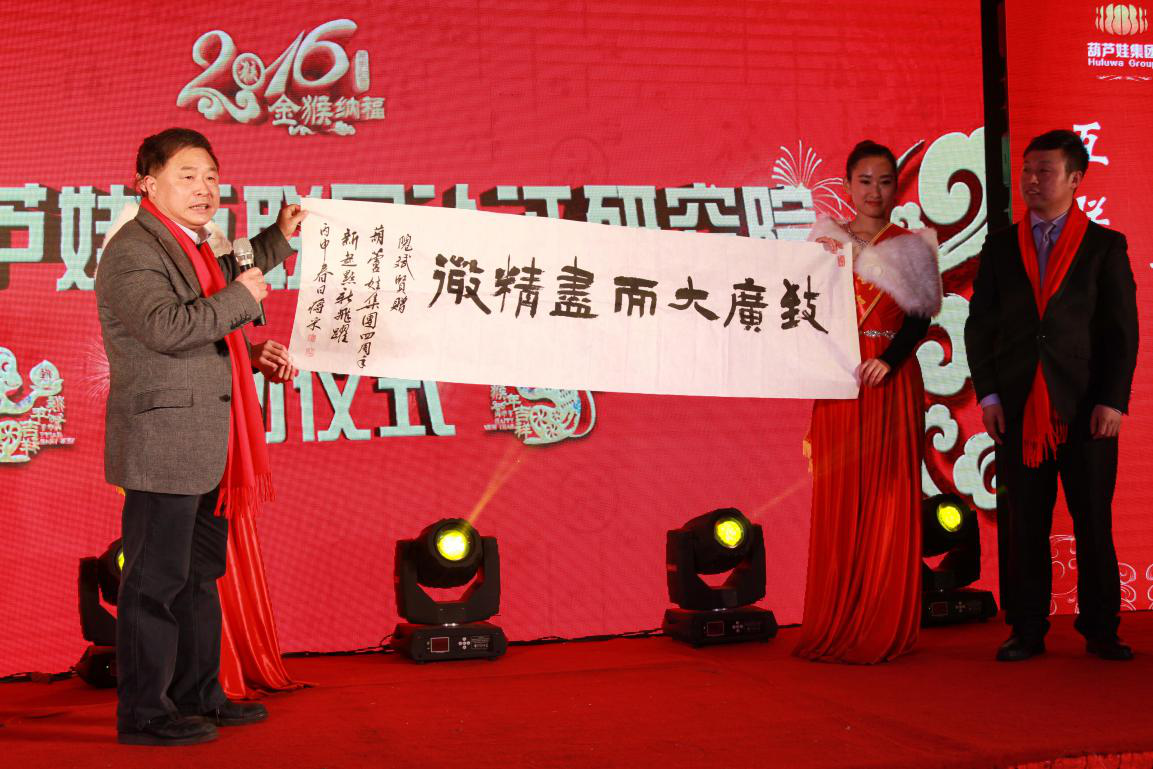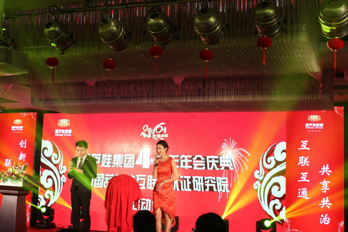 2016年1月19日,以“新跨越,新起航”為主題的“葫蘆娃集團4周年年會慶典暨中國葫蘆娃互聯(lián)網(wǎng)認證研究院啟動儀式”在杭州歌江維嘉大酒店舉行,浙江省政協(xié)副主席、省委統(tǒng)戰(zhàn)部部長、浙商總會榮譽會長孫文友,中國美術學院原常務副院長、正院級巡視員高法根,杭州市委原副秘書長、世界申遺專家王水法,浙江省政協(xié)常委、浙江省社會主義學院副院長隗斌賢等領導嘉賓出席,華數(shù)TV主持人張菁擔任主持。