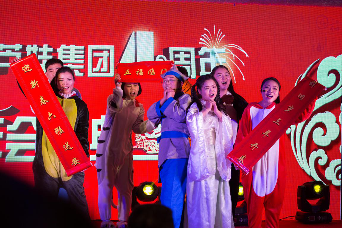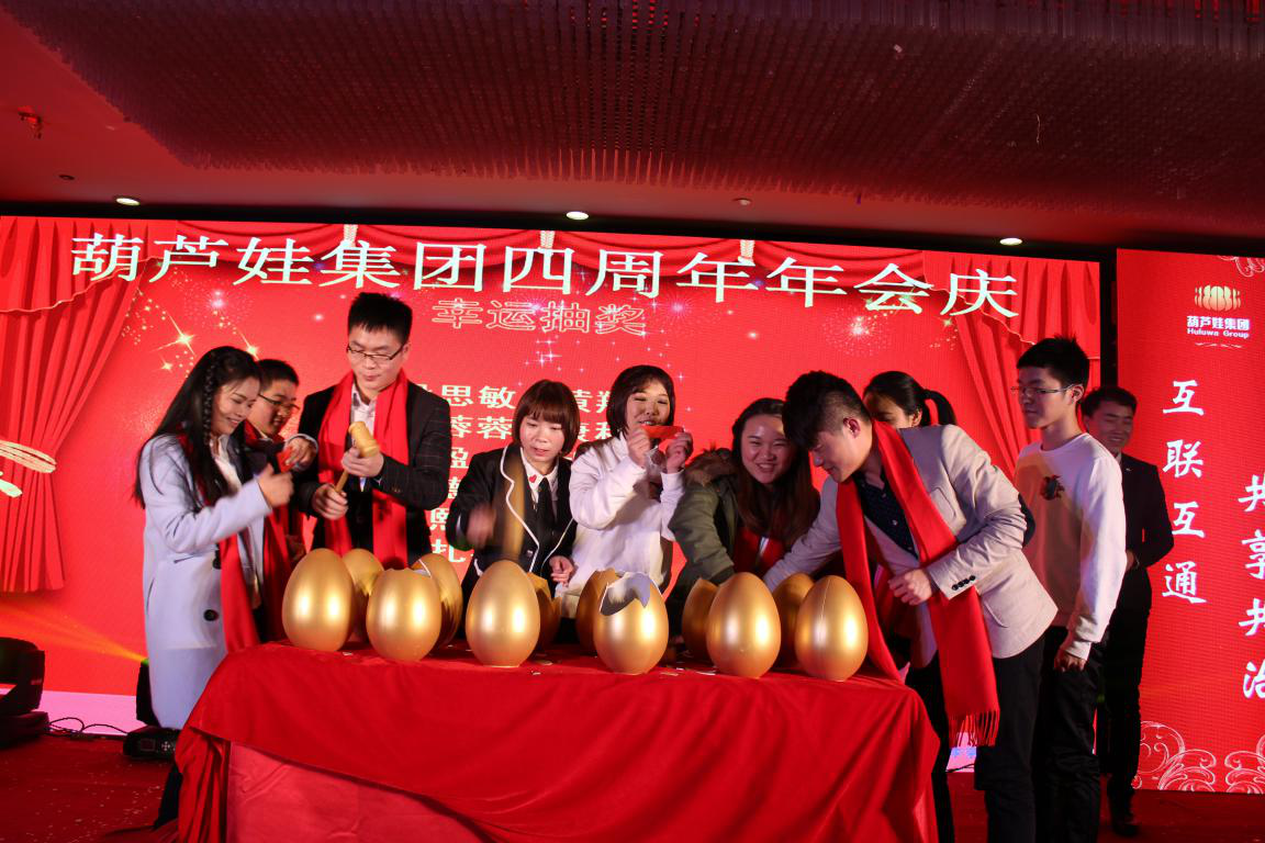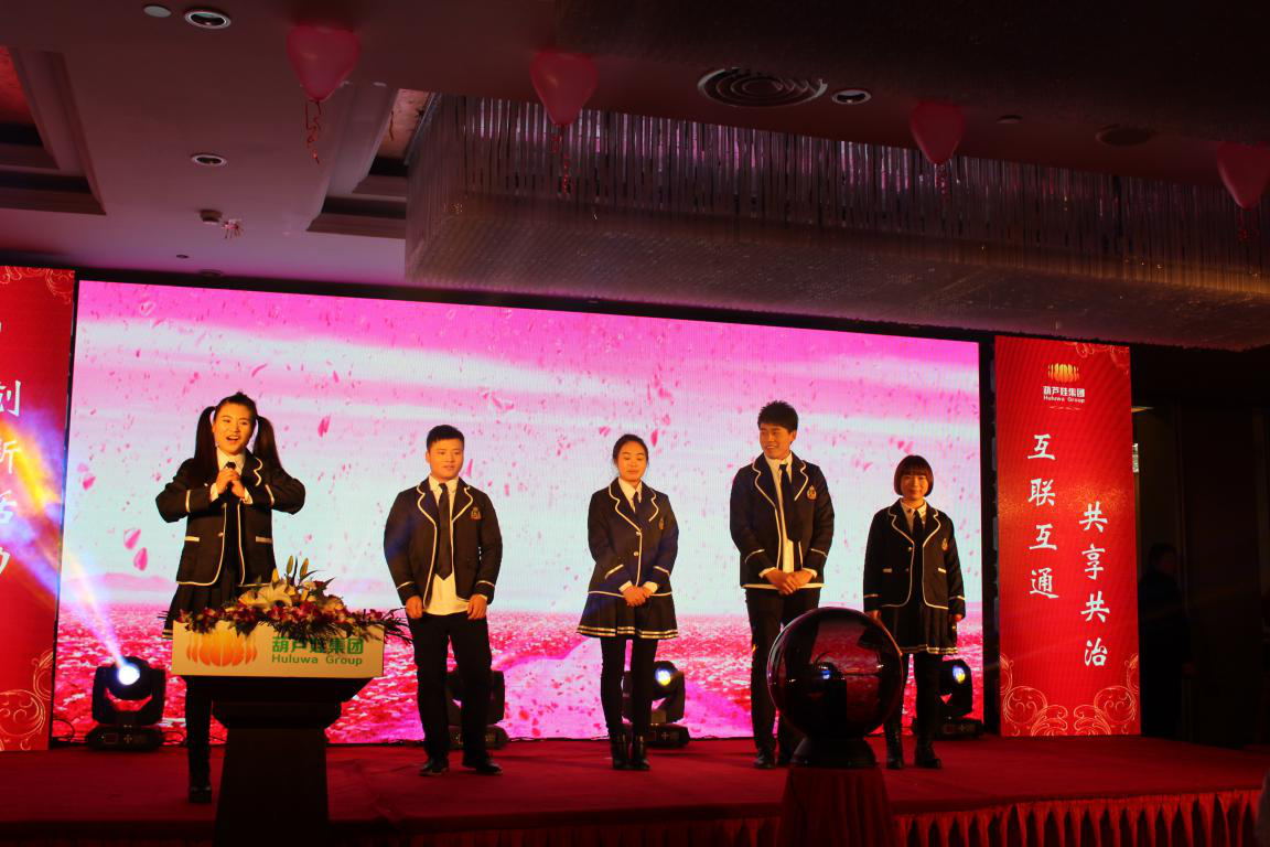 回首四年葫蘆娃取得的成績,我們倍感珍惜。這些成績的取得,凝聚了各級領導的深切關懷,凝聚了各界朋友的大力支持,凝聚了合作伙伴的精誠合作,凝聚了全體葫蘆娃人的不懈奮斗!晚會正式開始前,宴會廳LED屏幕上播放著精心制作的葫蘆娃集團員工拜年視頻。2015年對葫蘆娃來說是極不平凡的一年,經(jīng)過全體葫蘆娃人日日夜夜的共同拼搏,除杭州總部的浙江葫蘆娃以外,我們成立了江西葫蘆娃網(wǎng)絡技術有限公司,江西葫蘆娃電子商務有限公司,北京葫蘆娃會務有限公司!實現(xiàn)了在認證、電商、會務三個領域的全面發(fā)展。在互聯(lián)網(wǎng)認證領域,葫蘆娃已經(jīng)是中國互聯(lián)網(wǎng)認證行業(yè)龍頭企業(yè);在電商領域,葫蘆娃成為中國電子商務服務行業(yè)十佳企業(yè),并開拓了一個全新的輻射全國的電商人才認證平臺;在會務領域,我們與北京中國國展,與廣州廣交會簽訂了戰(zhàn)略合作協(xié)議!同時,在江西玉山高鐵電商園,葫蘆娃大廈實現(xiàn)封頂!視頻中講述了葫蘆娃集團2015年的發(fā)展,展現(xiàn)了葫蘆娃集團的辦公環(huán)境、葫蘆娃大廈、各部門的員工風采,匯聚了大家對葫蘆娃集團2016年的期待和祝福。