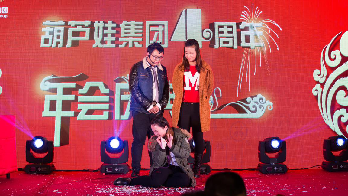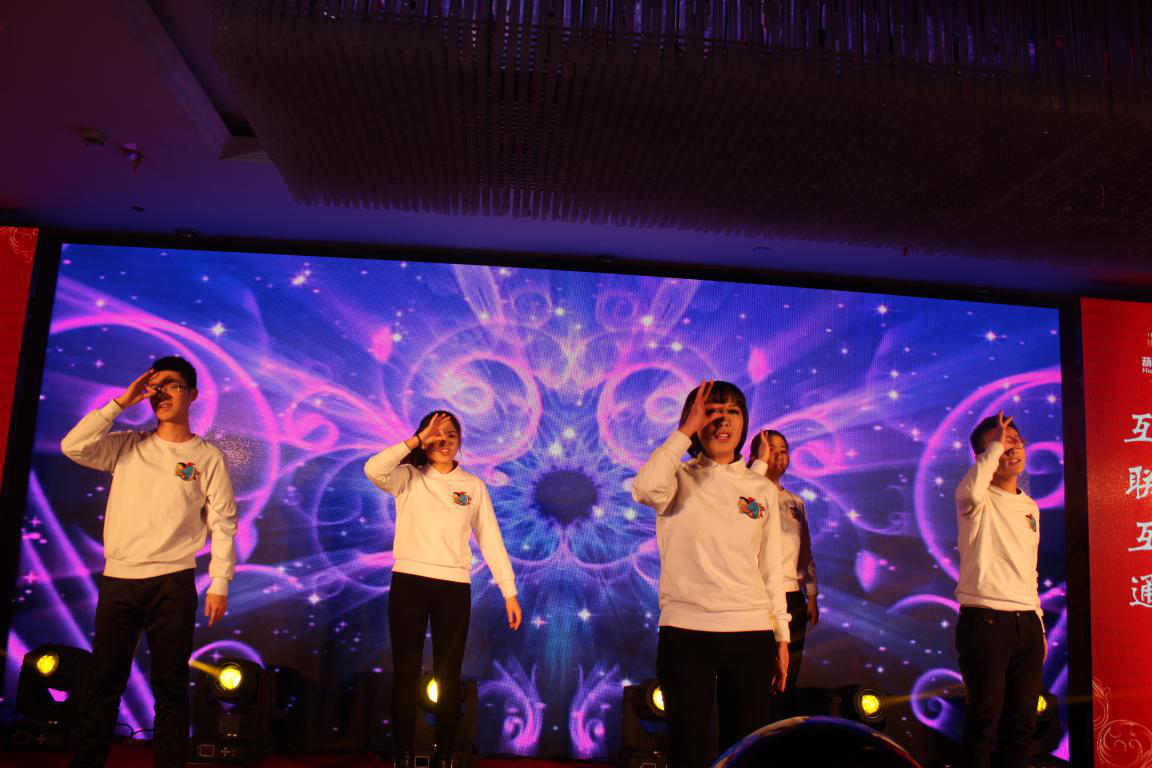 第一輪抽獎完畢,精彩節(jié)目繼續(xù)呈現(xiàn)。葫蘆娃集團3周年年會時,六部伙伴為大家?guī)淼摹度浒搿窂V獲好評,今年他們在此基礎上升級,為大家?guī)砹霜毦吆J娃文化特色的《四句半》,展現(xiàn)了六部的風采。葫蘆娃一直都是員工的溫馨家園,一部伙伴以一首手語《愛》,溫暖了全場。